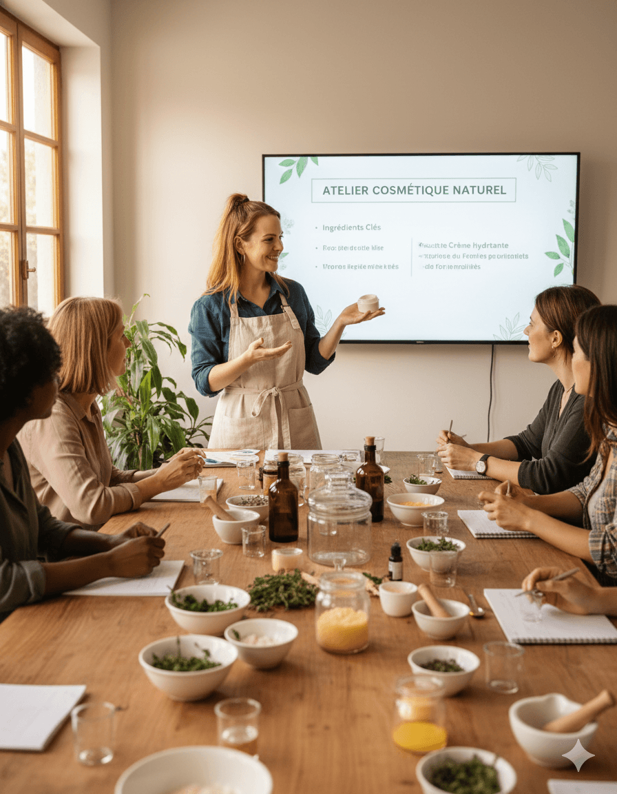 À travers des démonstrations pratiques, des recettes encadrées et des ateliers de manipulation, vous découvrirez comment créer des soins naturels simples, efficaces et sécurisés.