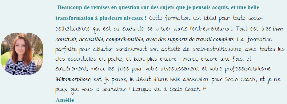 Chaque jour, c’est un vrai plaisir de vous accompagner pour aller plus loin et plus vite sur le chemin de la socio-esthétique, avec passion, créativité et bienveillance.